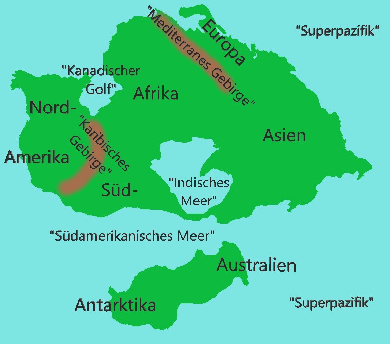 Die anhaltende Kontinentaldrift bewirkt auf lange Sicht eine permanente Veränderung der Erdoberfläche [1]. In etwa 250 Millionen Jahren wird aus diesem Grund ein neuer Superkontinent entstehen [2]. Da es sich erneut um eine einzige große zusammenhängende Landmasse handeln wird, ist wieder mit einem heißen und sehr trockenen, kontinentalen Klima eines akryogenen Warmzeitalters zu rechnen. Ein derartiges Klima herrschte zuletzt am Anfang des Mesozoikums vor rund 250 Millionen Jahren– zu Beginn des Dinosaurierzeitalters.