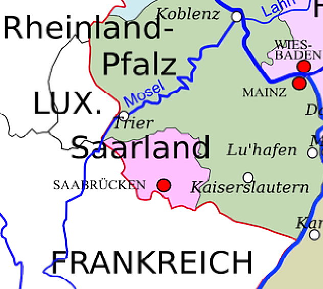 Das kleine Saarland zwischen dem etwa gleich großen Luxemburg, dem fast 8-mal größeren Rheinland-Pfalz und dem 212-mal größeren französischen Kernland. Dabei handelt es sich um das Territorium in Europa ohne Außengebiete in Übersee oder auch Metropolitan-Frankreich. (Quelle: Pixabay CC0 1.0)